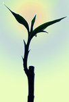 2009Haiku: Bamboe blad reikt uit- naar de zon en blauwe lucht- Vrije vogel's dagdroom